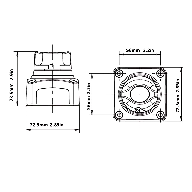 Interruptor de corte de batería SEAFLO Proteja su RV instalando este interruptor principal de batería SEAFLO. Con capacidad nominal de 275 A continuos, 450 A intermitentes, 1250 A de arranque y 48 V. Puede empotrarse o montarse en superficie.
