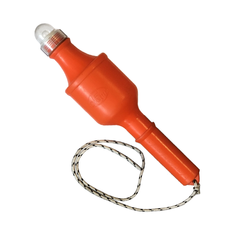 Una vez que la boya es lanzada al agua, gracias a su diseño, ésta se pondrá a flote en posición vertical con la luz hacia arriba, encendiéndose automáticamente al estar en dicha posición.