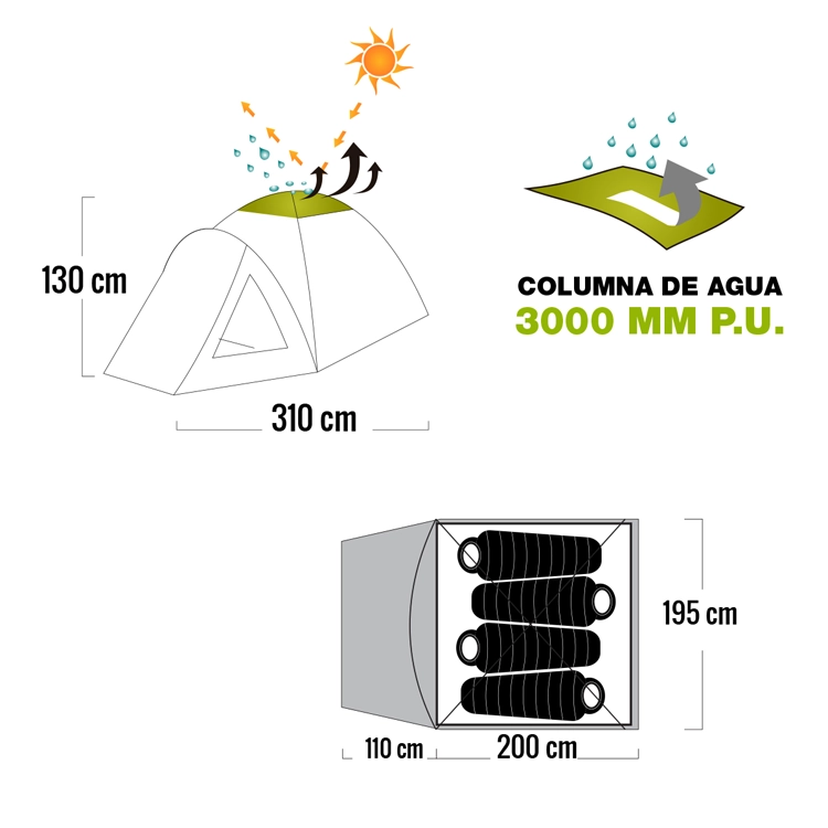 Carpa familiar para 4 personas Waterdog Sahara IV