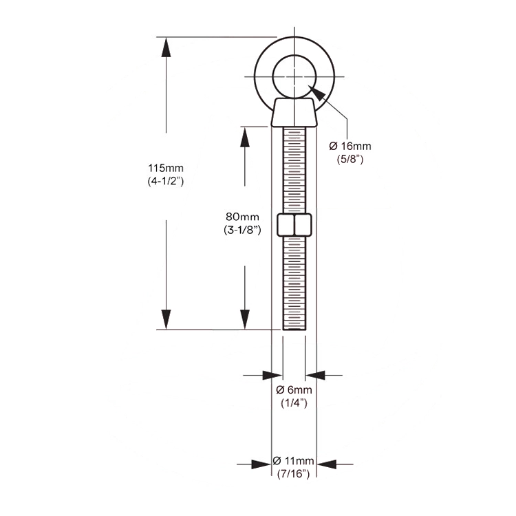 Cáncamo D60 x 80 mm argolla 1 vástago inox. Five Oceans