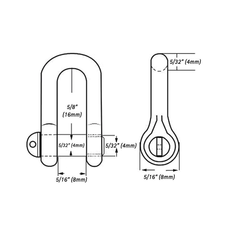 El grillete recto corto está fabricado en acero inoxidable AISI 316 forjado de alta calidad, gran brillo y contornos suaves, asegurando de que se mantenga la forma con cargas que cumplan o superen el punto de deformación (a diferencia del acero inoxidable fundido).