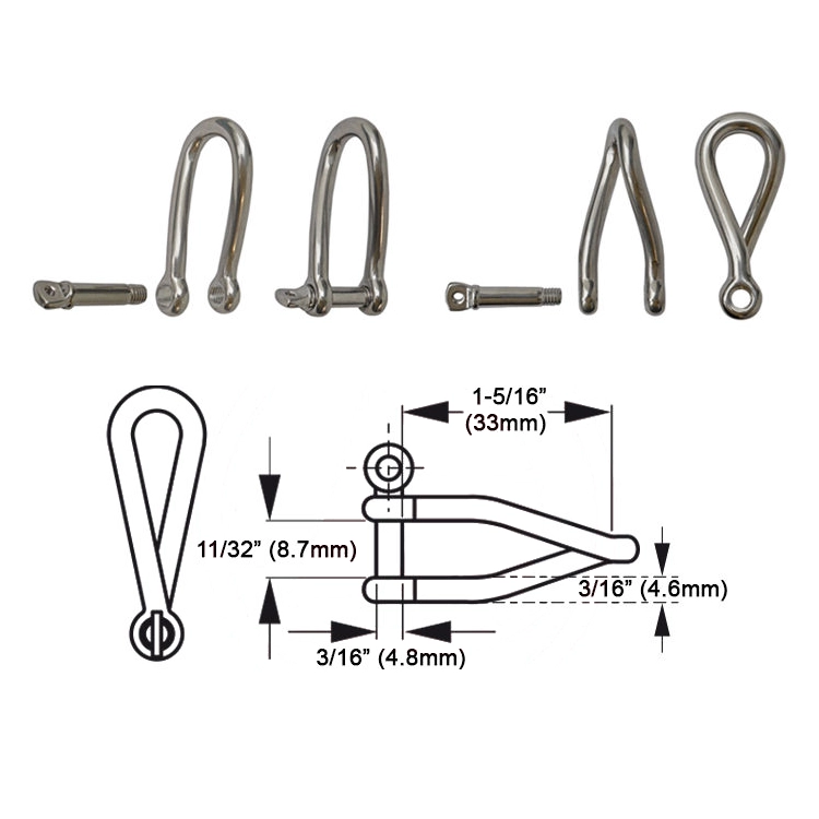 El grillete retorcido está fabricado en acero inoxidable de alta calidad, posee gran brillo y contornos suaves. Altamente resistente para un mayor rendimiento en el ambiente marino, brindando así una extrema durabilidad.