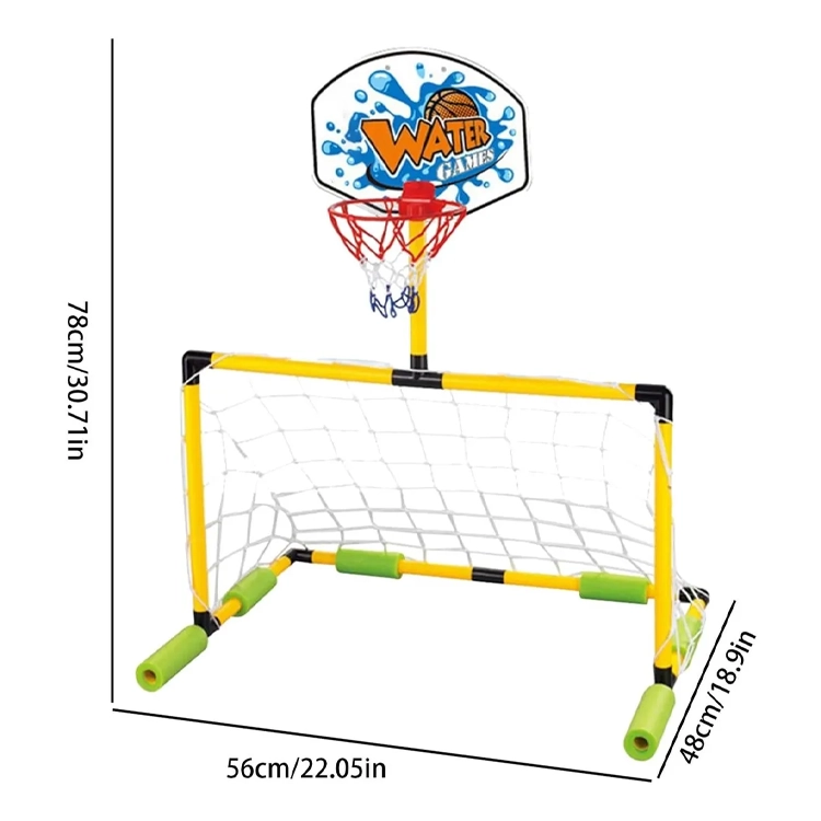 El set viene completo con aro flotante, pelotita de básquet, pelotita de fútbol e inflador. No hace falta comprar nada extra: lo sacás de la caja y ya estás jugando. Una excelente opción para sumar movimiento y diversión a cualquier tarde de verano.
