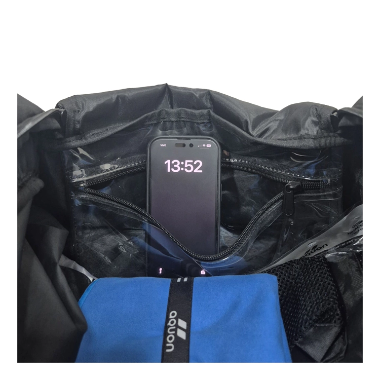 Internamente posee un bolsillo plástico para guardar papeles o documentos importantes, y así protegerlos del agua o la humedad. Además, cuenta con un bolsillo externo lateral separado del compartimento principal, cuyo objetivo es separar la ropa húmeda, sucia o las zapatillas.