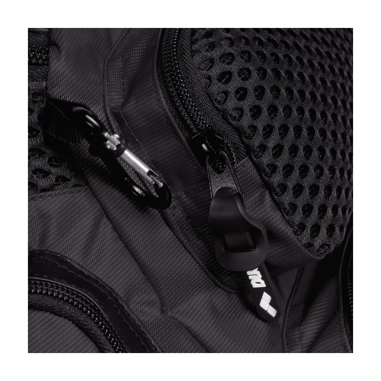Confeccionada con materiales repelentes al agua y compartimentos diseñados para controlar la humedad, mantiene tu equipo fresco y listo para acompañarte en cada etapa de tu entrenamiento o viaje.
