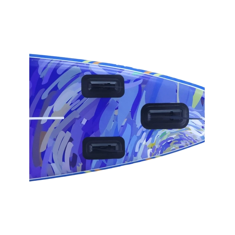 – Sistema trifin. 3 quillas desmontables. Esto permite una configuración monoquilla para Touring (recorrer en aguas tranquilas). O sistema de tres quillas para maximizar el agarre en las olas.