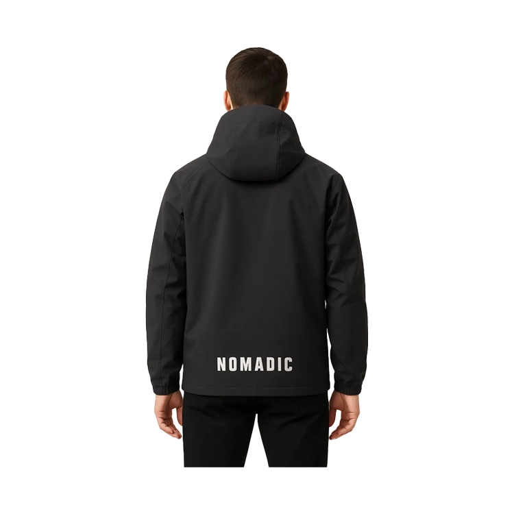 Logo reflectivo NOMADIC: Visibilidad en ambientes de baja luz con estética outdoor.