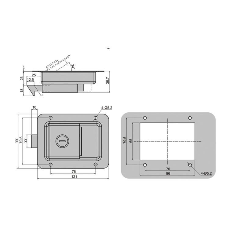 Cerradura c/llave p/baulera chica negra 12×9 cm Caram